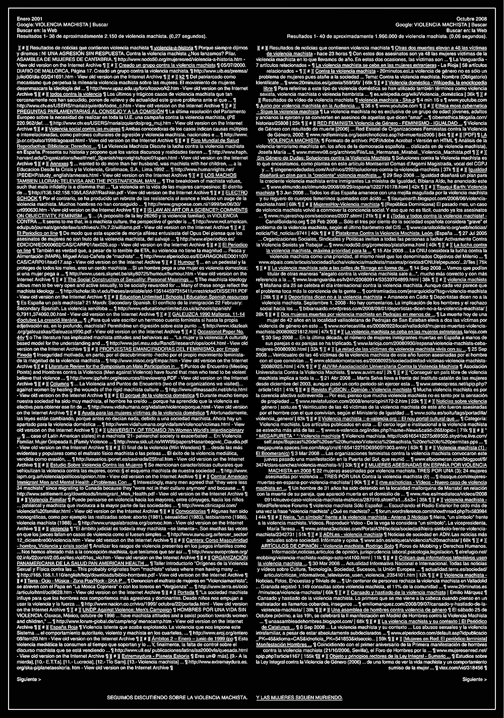 Utilizando el buscador por años de Google para dos años diferentes y separados casi una década, se generan unos resultados que, al comparalos, nos dan una clara idea de lo pasmoso del aumento de las cifras sobre este asunto. Y de lo escandaloso de que, a pesar de que se hable más y más de ello, las mujeres sigan muriendo por el mismo motivo.