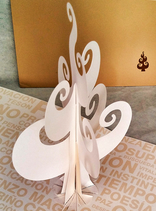 Para esta campaña se diseñó y construyó un árbol de tres piezas móviles que le permitiesen plegarse y desplegarse al cerrar y abrir la tarjeta. El interior de la tarjeta es un sustrato de los mejores deseos para abonar ese árbol, ese sueño.