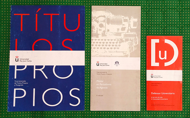 Tras realizar la imagen corporativa de la URJ se procedió a unificar bajo esa misma identidad la multitud de folletos que sobre títulos, cursos, actividades, etc., constantemente ofrecían sus diferentes vicerectorados.
