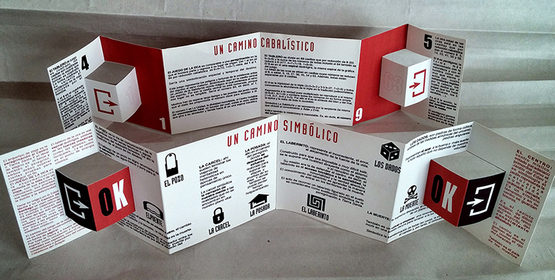 Para conseguir un tamaño compacto y manejable por el viajero todo es compacto o plegable. Los pequeños elementos necesarios para jugar se encajaban en los huecos creados por el plegado de los dos folletos donde se explica el significado detrás de la apasionante simbología de cada elemento icónico del Juego de la Oca.