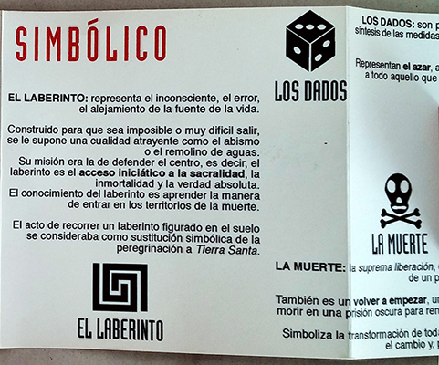 Para conseguir un tamaño compacto y manejable por el viajero todo es compacto o plegable. Los pequeños elementos necesarios para jugar se encajaban en los huecos creados por el plegado de los dos folletos donde se explica el significado detrás de la apasionante simbología de cada elemento icónico del Juego de la Oca.